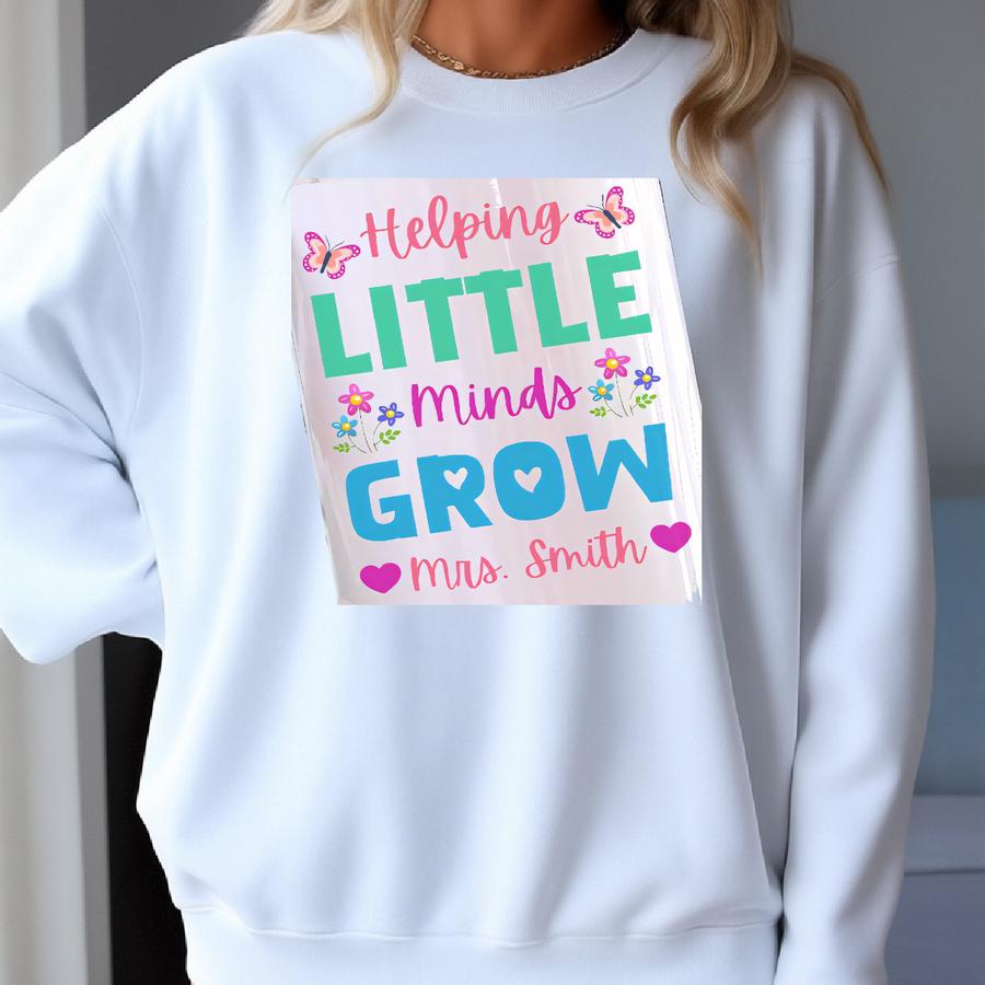 Personalized Teacher Tumbler 40oz, Custom Teacher Appreciation Tumbler With Handle, Helping Little Minds Grow Back To School Tumbler Cup Sweatshirt