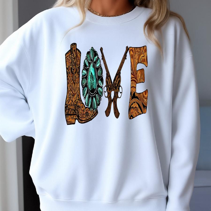 Cowgirl Western Love Tee, Rustic Canvas Cowgirl Gift, Rodeo Gift, Cowgirl Love Sweatshirt