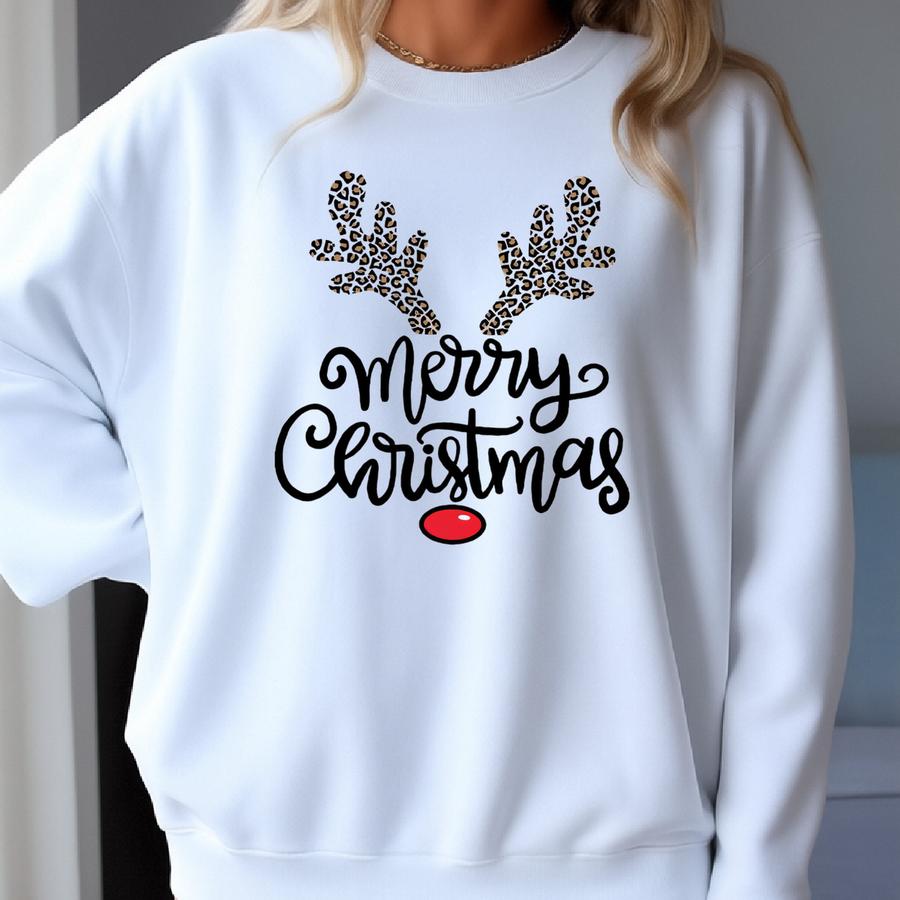 Christmas Deer Sweatshirt: Leopard Antlers, Holiday Crewneck Sweatshirt