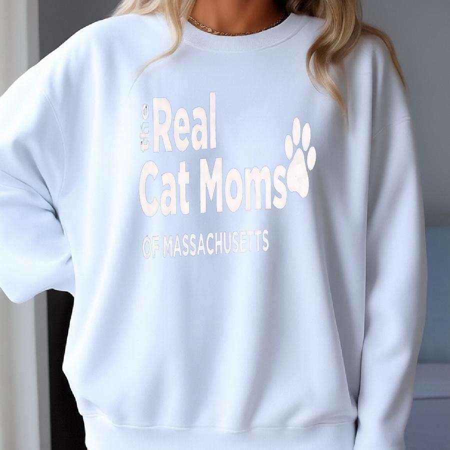 Cat Mom T-shirt, Massachusetts Cat Lovers Tee, Real Cat Moms Casual Shirt, Perfect Gift For Pet Owners, Fun Animal Lover Top, Comfy Cotton Sweatshirt