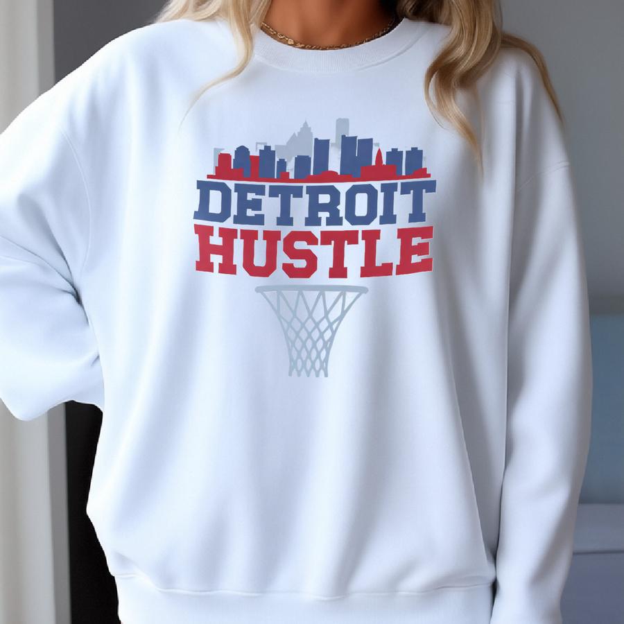 Detroit Hustle Basketball Hoodie: Vintage Motor City Sports Fan Apparel Sweatshirt