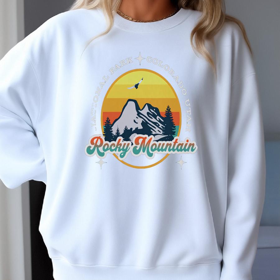 Rocky Mountain Sweatshirt, National Park Pullover, Colorado Sweater, Utah Crewneck, Vacation Jumper, Travel Souvenir Shirt Oversized Apparel Sweatshirt