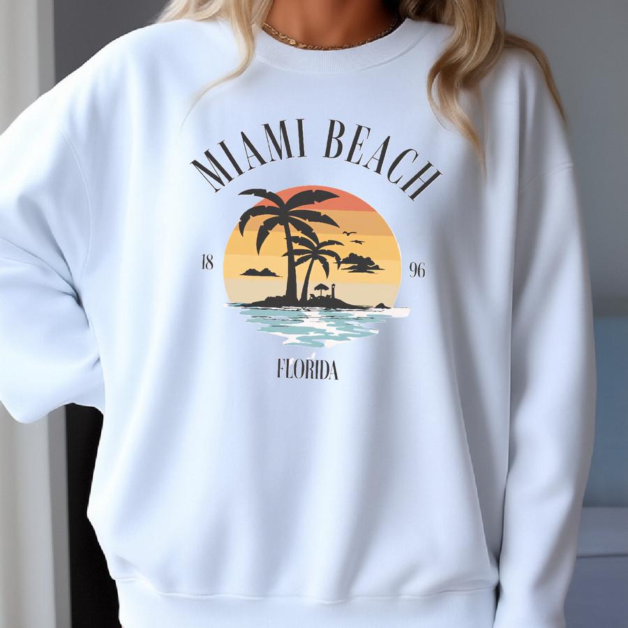 Miami Beach Sunset Sweater, Florida Pullover, Island Resort Sweatshirt, Vacay Crewneck, Vacation Jumper, Travel Souvenir, Oversized Apparel Sweatshirt