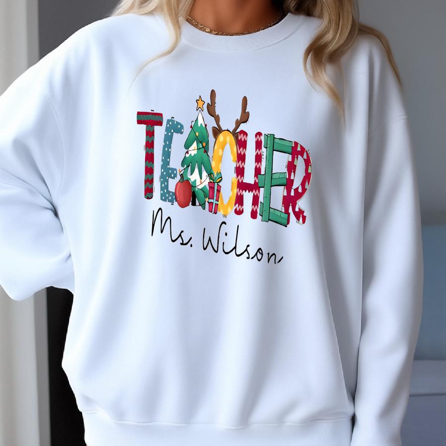 Custom Christmas Teacher Tee, Christmas Teacher, Personalized Christmas, Christmas Gift, Teacher Appreciation Gift, Xmas Gift Sweatshirt