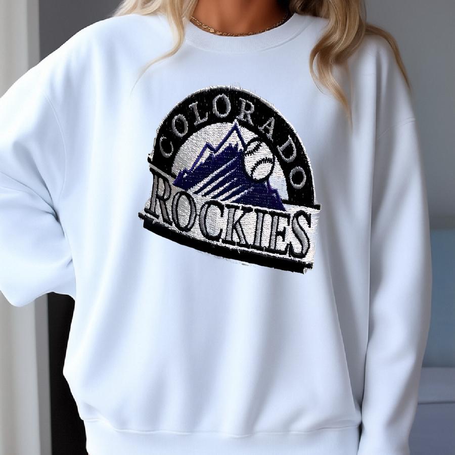 Vintage 1990s Colorado Rockies Mlb Baseball White And Purple Snap Back Hat (fits Head Size Small/medium) Sweatshirt