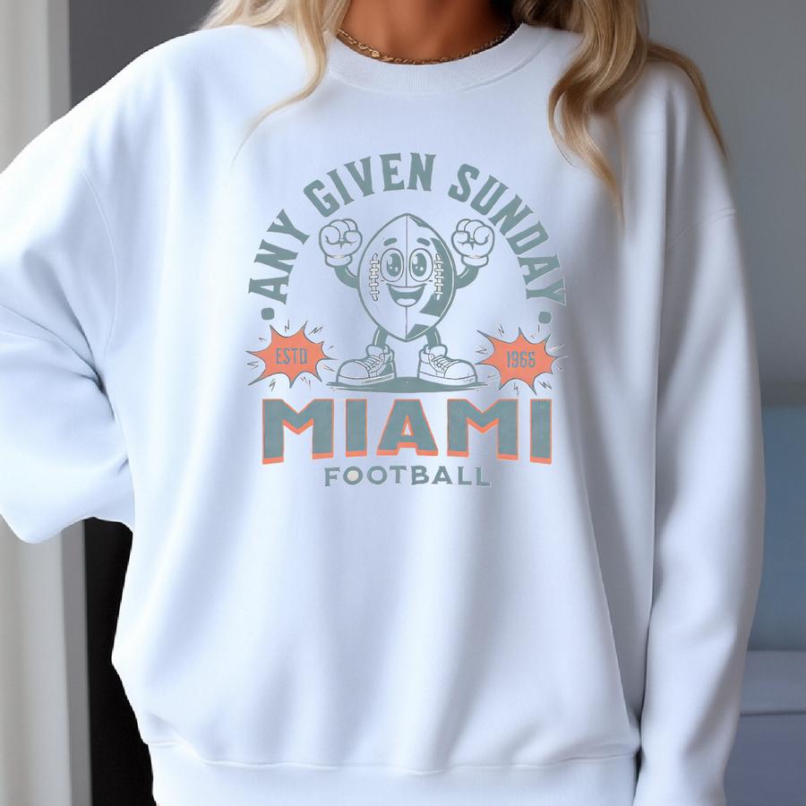 Retro Miami Football Sweatshirt, Vintage 70s Mascot, American Sweater, Football Fan Gift, Football Apparel, 80s Dolphin Merch Sweatshirt