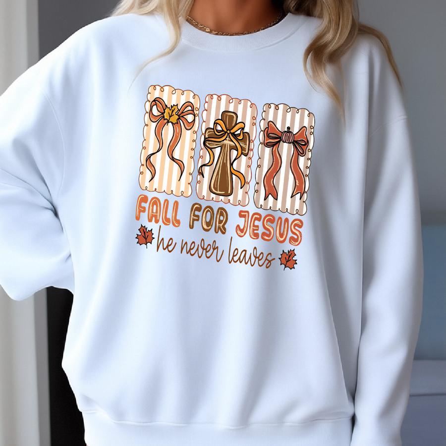 Fall For Jesus He Never Leaves, Jesus Shirt, Jesus Fall, Spiritual, Pumpkin Spice, Autumn Christian Fall Halloween Religious Sweatshirt