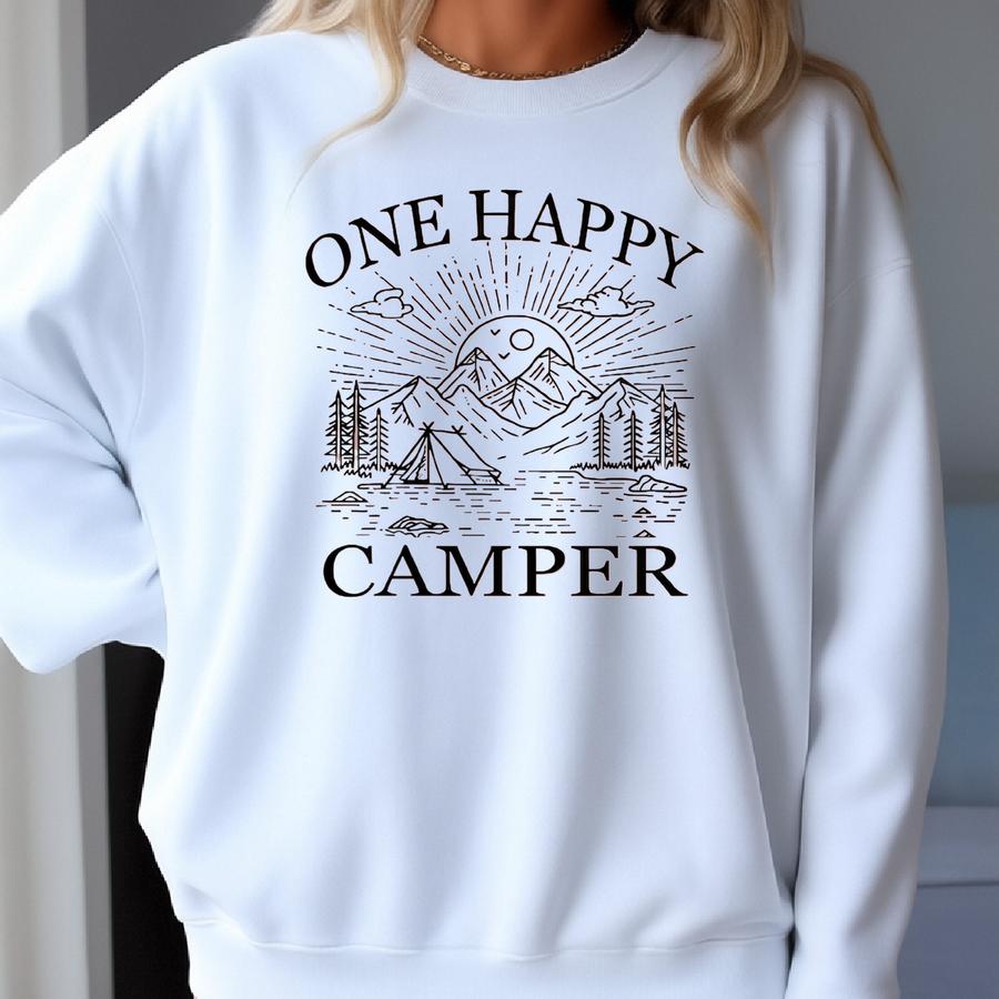 One Happy Camper Baby Romper Sweatshirt, First Birthday Baby Romper, Camping Baby Clothes, Bodysuit, Newborn Outfit Sweatshirt