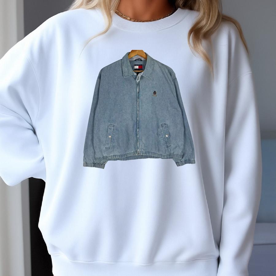Vintage 90s Tommy Hilfiger Herrington Zipper Denim Jacket Blue Colour Size Large Sweatshirt