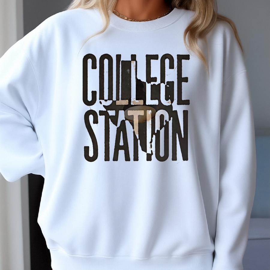 College Station Texas Vintage Ink Press Typography Art Print, Large Texas Wall Art, Texas Home Decor, Texas Aggie Print, Graduation Gift Sweatshirt