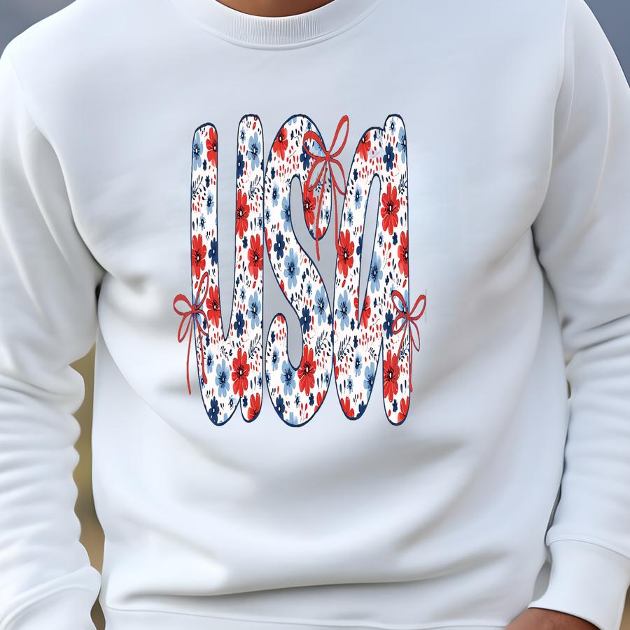 Floral Usa Shirt: Patriotic 4th Of July Tee Sweatshirt