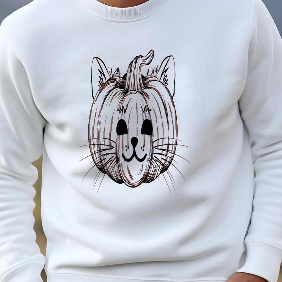 Cat Pumpkin Halloween Long Sve Tee: Unisex Fall Shirt Sweatshirt