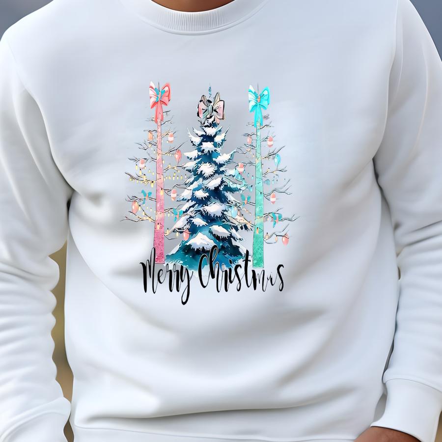 Christmas Tee, Super Fun Christmas Trees In Pastel Colors, Pastel Trees Design, Premium Unisex Shirt, 4 Color Choices, Plus Sizes Available Sweatshirt