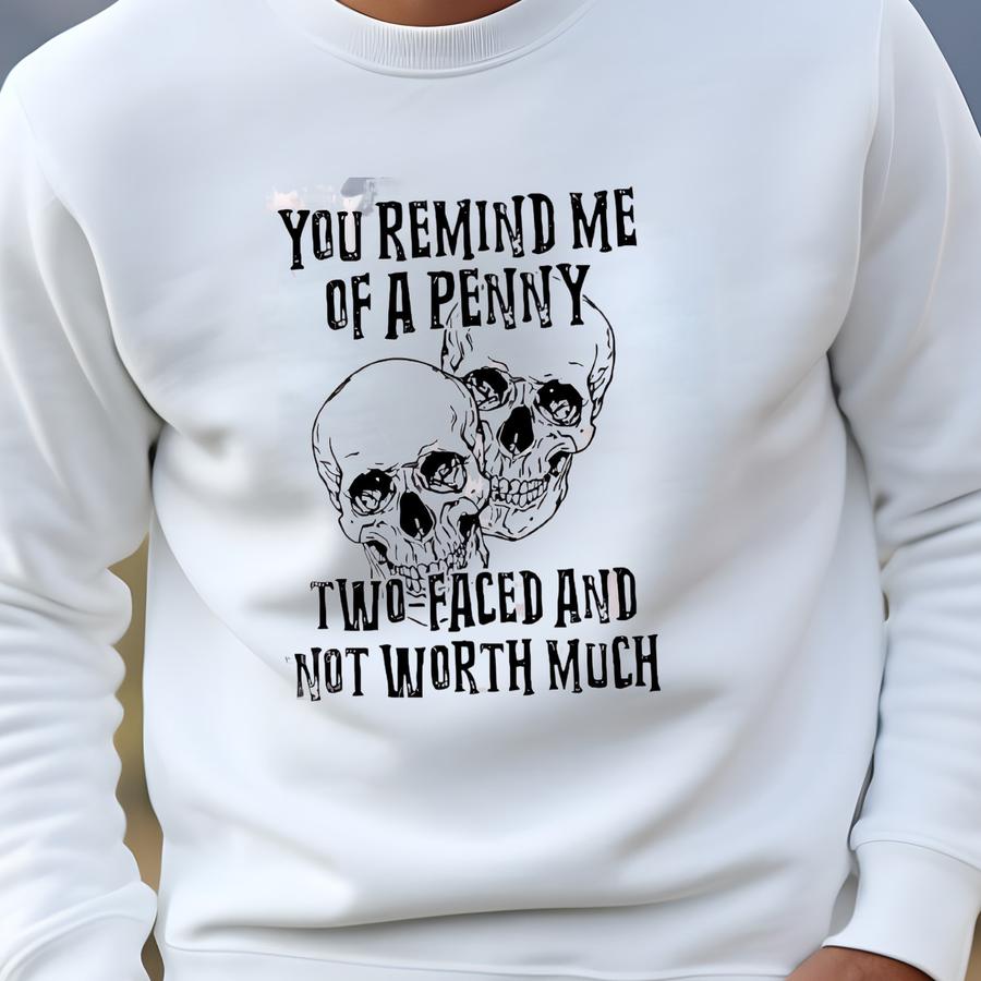 You Remind Me Of A Penny Hoodie, Two Faces And Not Worth Much T-shirt, Rude Humor Tee, Sarcastic Sweatshirt, Skulls, Shirt Sweatshirt