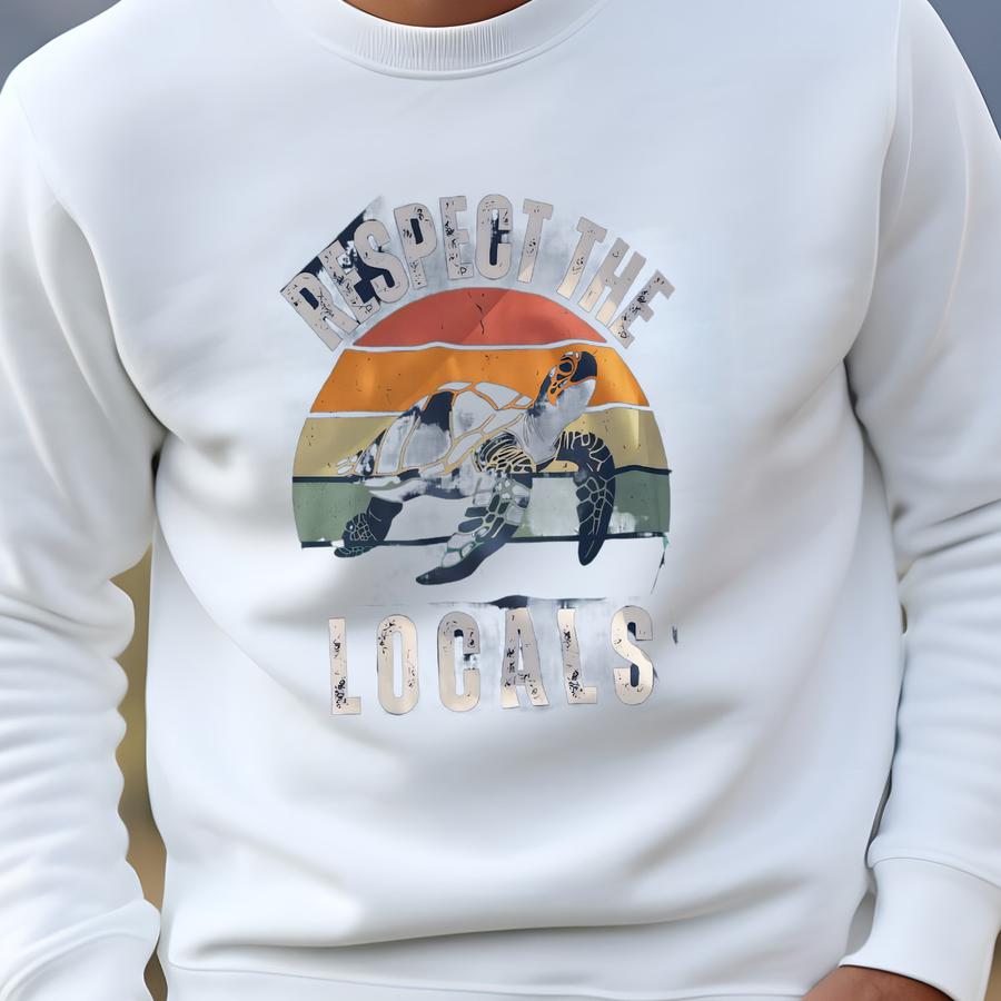 Respect The Locals Retro Sea Turtle Eco Beach Conservation Nature-loving Graphic T-shirt Sweatshirt