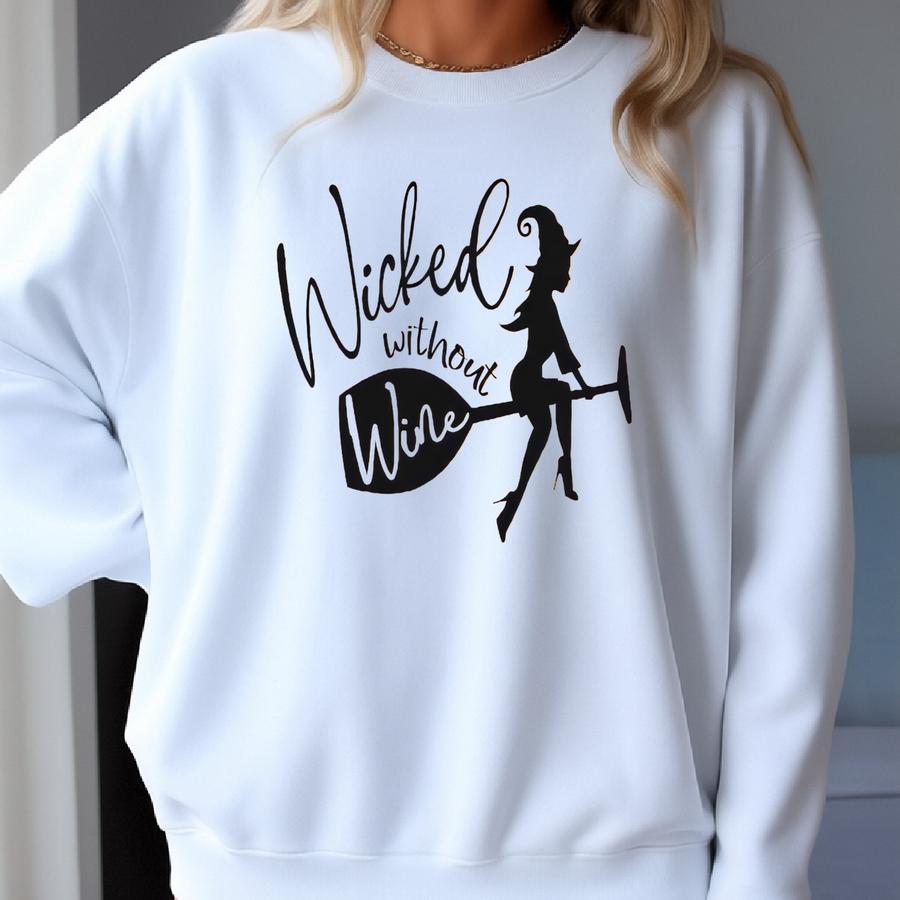 Wicked Without Wine Shirt, Funny Halloween Drinking Tee, 12171 Sweatshirt