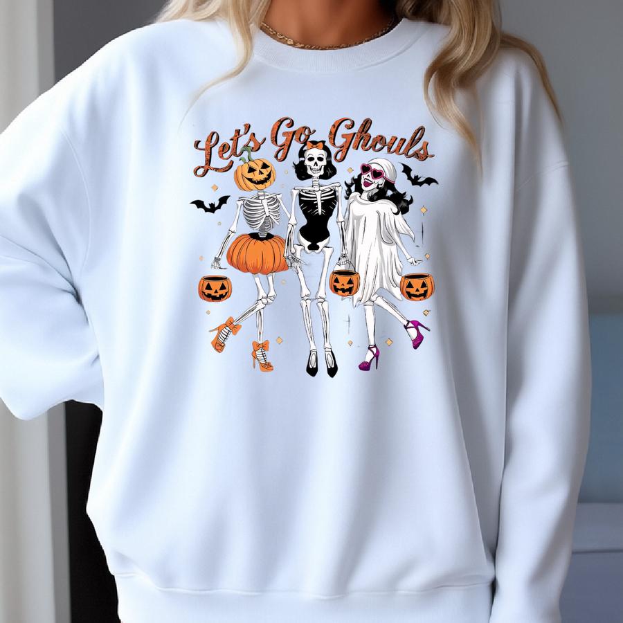 Let's Go Ghouls Shirt, Skeleton Halloween, Skeleton Ghost Shirt, Spooky Season Shirt, Halloween Sweatshirt, Ghouls Crewneck, Spooky Pumpkin Sweatshirt