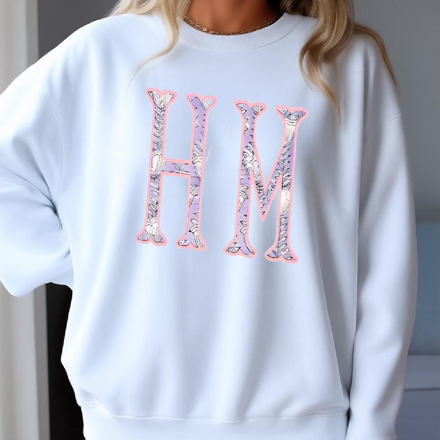 Block Print Gift Bundle With Applique / Personalized Floral Makeup, Handmade Quilted Cosmetic, Personalized Women's Waffle Robe Gift Sweatshirt