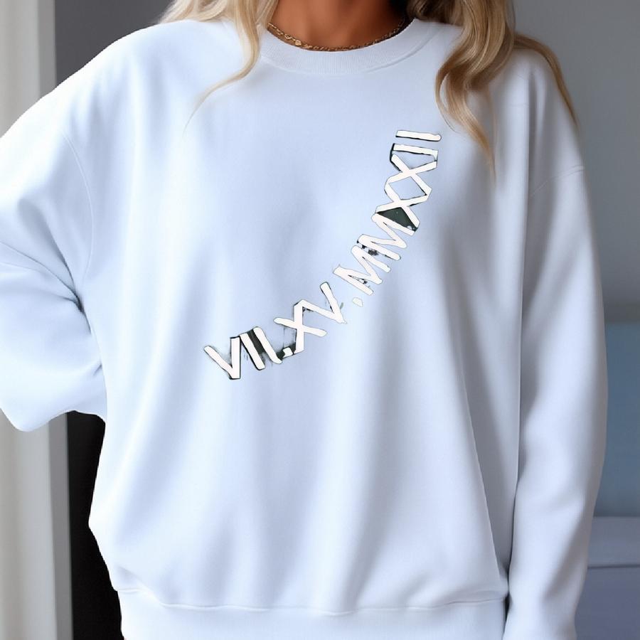 Anniversary Gift For Him With A Custom Roman Numeral Sweatshirt. One Year Anniversary For Boyfriend. Around The Neckline Sweatshirt