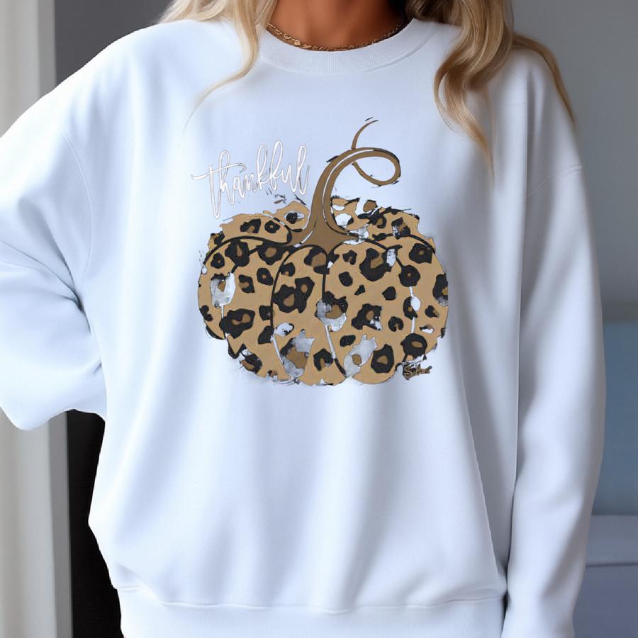 Mens Womens Thankful Pumpkin Fall Leopard Print Sweatshirt