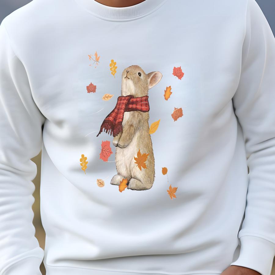 Fall Leaves Bunny Rabbit Sweatshirt, Autumn Bunny Crewneck, Cute Bunny Shirt, Bunny Rabbit Lover Shirt, Thanksgiving Shirt, Bunny Mom Shirt Sweatshirt