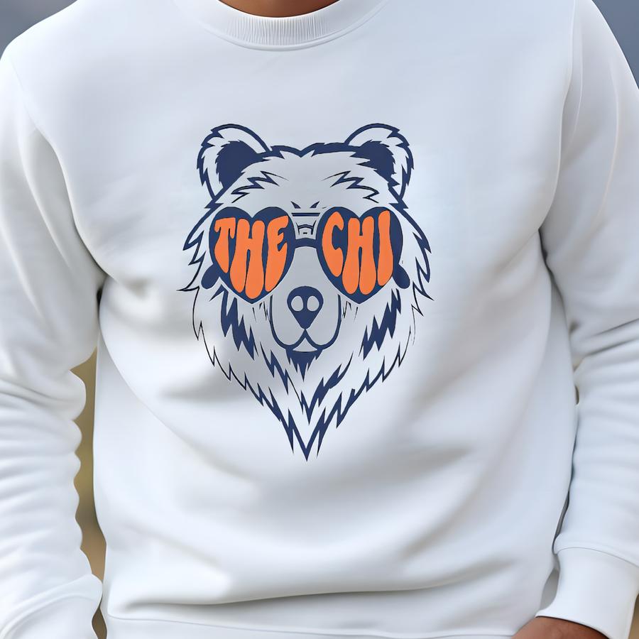 Womens Crop Chicago Football Top, Sports Cropped Tee, Gift For Sports Fan, Ladies Game Day Outfit, Mascot The Chi Heart Glasses Sweatshirt