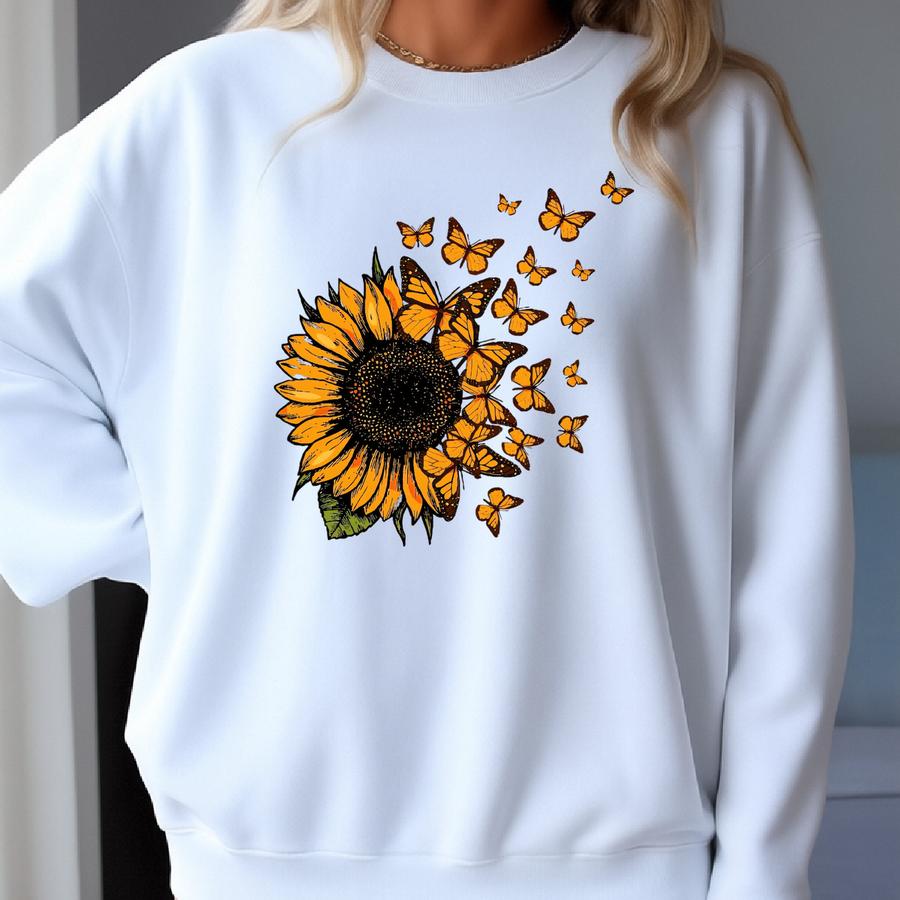 Beautiful Suower And Flying Butterflies Sweatshirt, Cute Suower Sweater, Suower And Flying Butterflies Tee, Cute Gift For Women Sweatshirt