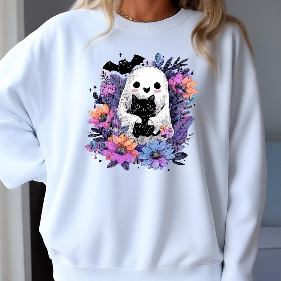 ® Cute Ghost Black Cat Halloween T-shirt, Ghost And Cat Shirt, Cat Mom Halloween Gift, Halloween Gift Sweatshirt