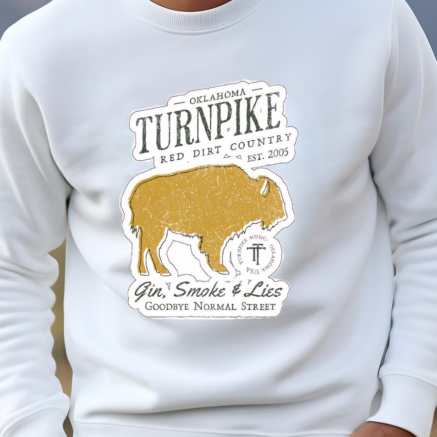 Turnpike Music Vintage Buffalo Western Sticker, Gin Smoke Lies, Oklahoma Red Dirt Concert Merch, Goodbye Normal Street, Honky Tonk,tahlequah Sweatshirt