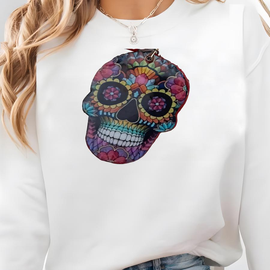 Skeleton Artisanal Wooden Earrings. Halloween Style. Latina Style Earrings. Boho Chic Style. Traditional Mexican Jewelry. Dia De Los Muertos Sweatshirt