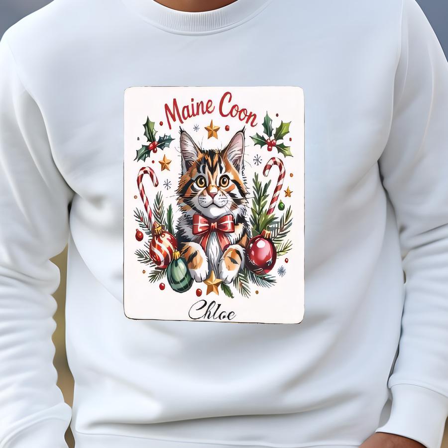 Maine Coon Sled Ornament: Custom Name, Christmas, Cat Breed, Holiday Sweatshirt