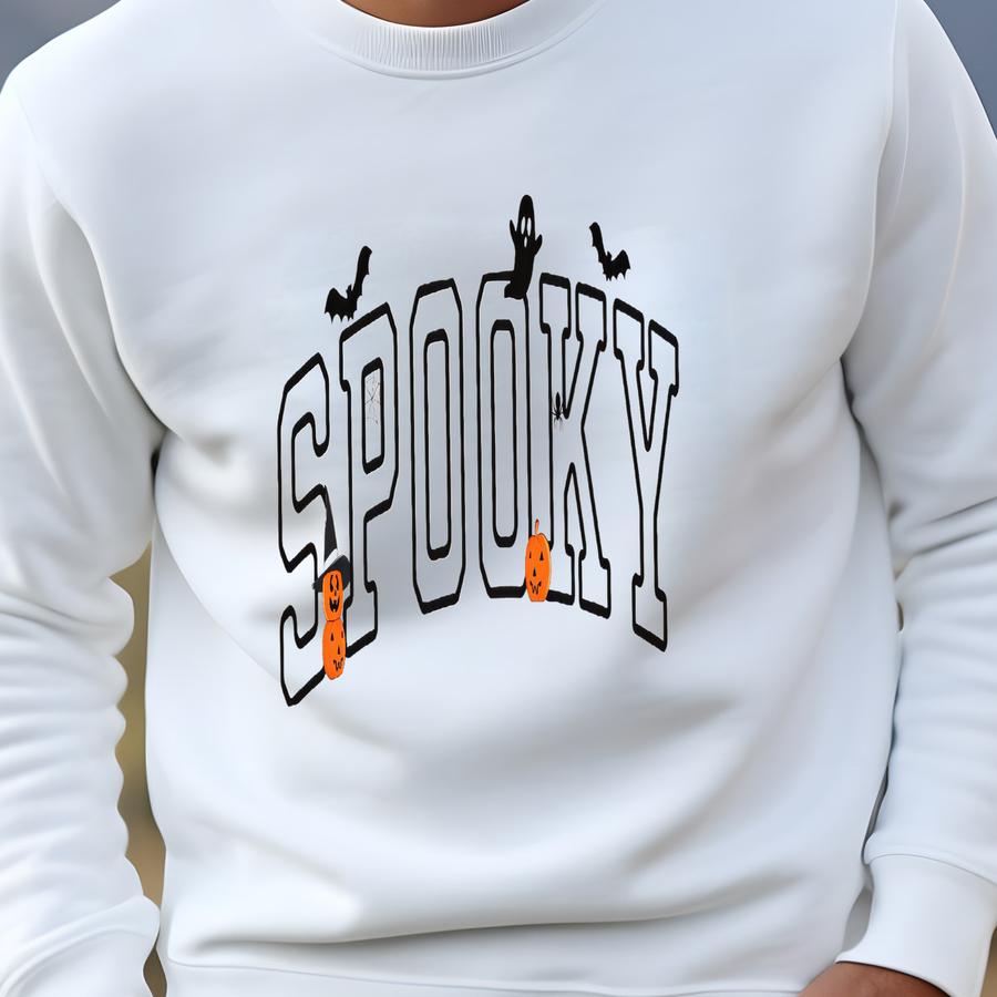 Spooky Halloween Sweatshirt, Pumpkin And Bat Crewneck, Cute Spooky Season Pullover, Cozy Fall Sweater, Ghost Aesthetic Top Sweatshirt