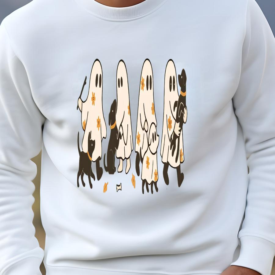 Halloween Dog Mom Sweatshirt, Ghost Walking Dog Crewneck, Spooky Fall Pet Lover Sweater, Cute Sweatshirt Gift Sweatshirt
