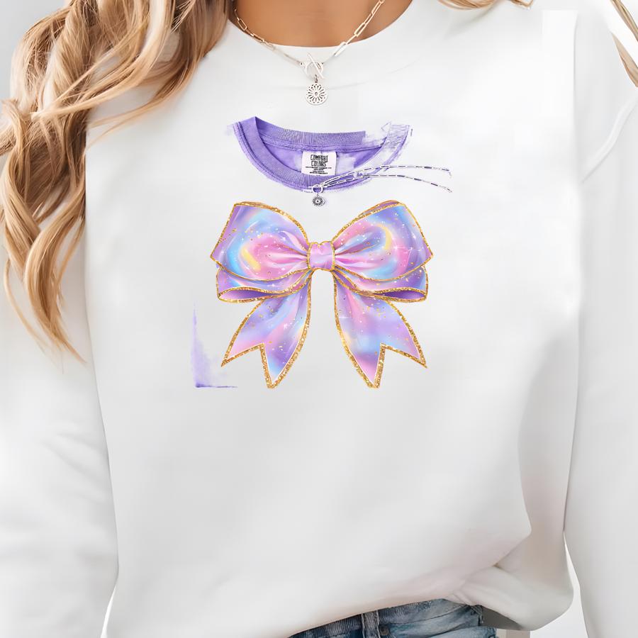 Cute Shimmery Coquette Iridescent Bow, Girly T Shirt, Coquette T Shirt, Coquette Aesthetic Tshirt, Women's Ribbon Sweatshirt, Coquette Bow Sweatshirt