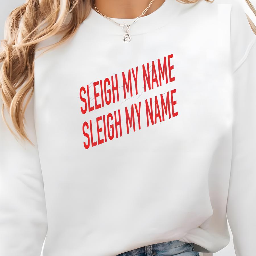 Sleigh My Name Christmas Party Shirt: Funny Holiday Pun Graphic Tee Sweatshirt