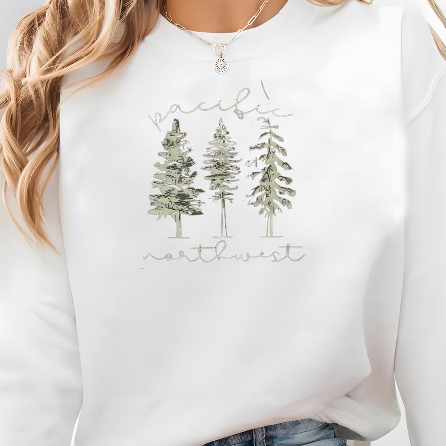 Pacific Northwest Tshirt Pac Nw Gifts Washington State Aesthetic Nature Tee Minimalist Pine Trees Tshirt Christmas Gift Sweatshirt