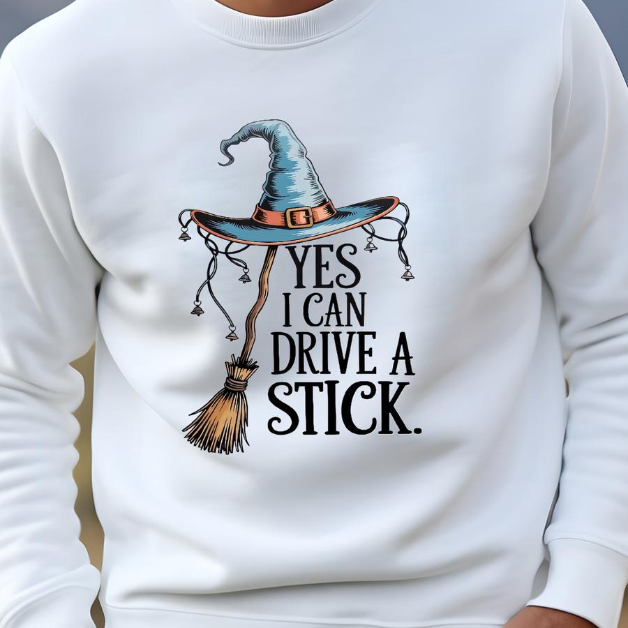 Yes I Can Drive A Stick Sweatshirt | Halloween Gift | Family Shirt | Hoodie | T-shirt | Spooky Witch Broom Sweatshirt