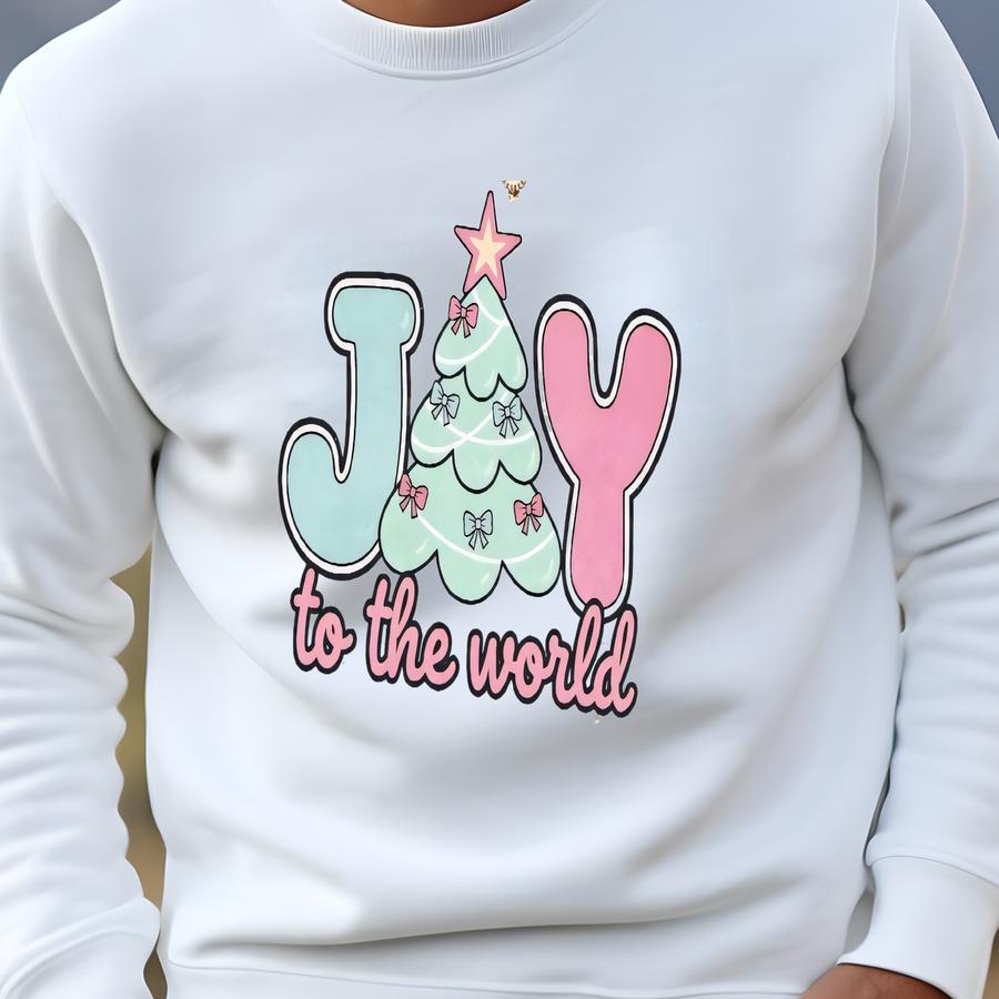 Joy To The World Sweatshirt Coquette Jesus Christmas Tee Preppy Pink Christmas Crewneck Youth Christmas Shirt Bible Verse Shirt Nativity Tee Sweatshirt
