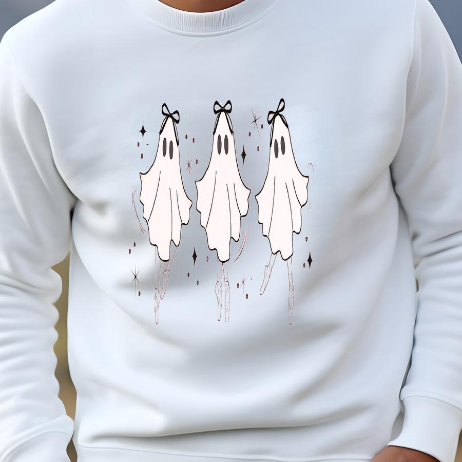 Ghost Ballerina Shirt For Fall Tshirt Youth And Adult Autumn Sweatshirt Matching Mommy And Me Fall Ballet Halloween Bow Pumpkin Patch Shirt Sweatshirt