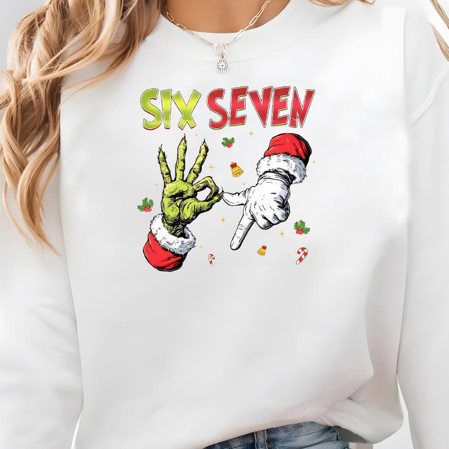 Christmas Santa Six Seven Hand Sign Sweatshirt, Trending Social Media Humor Shirt Sweatshirt