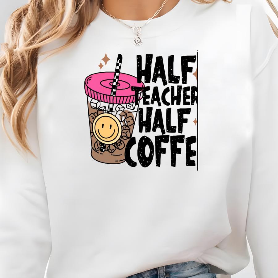 Half Teacher Half Coffee Hoodie: Funny Gift For Coffee-loving Educator Sweatshirt