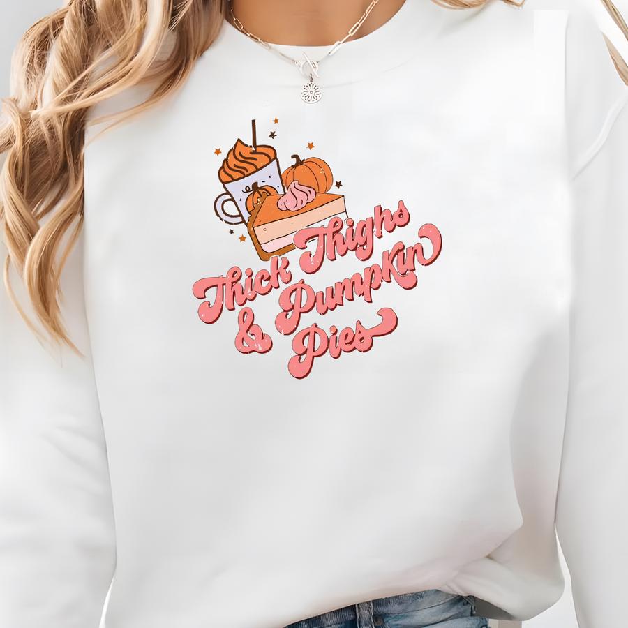 Thanksgiving Funny Sweatshirt Thick Thighs Pumpkin Pies Sweatshirt