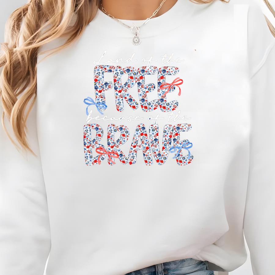 ® Land Of The Free Because Of The Brave shirt, Floral 4th Of July Shirt, Patriotic Women Tee, Independence Day, Free Brave Tee Sweatshirt