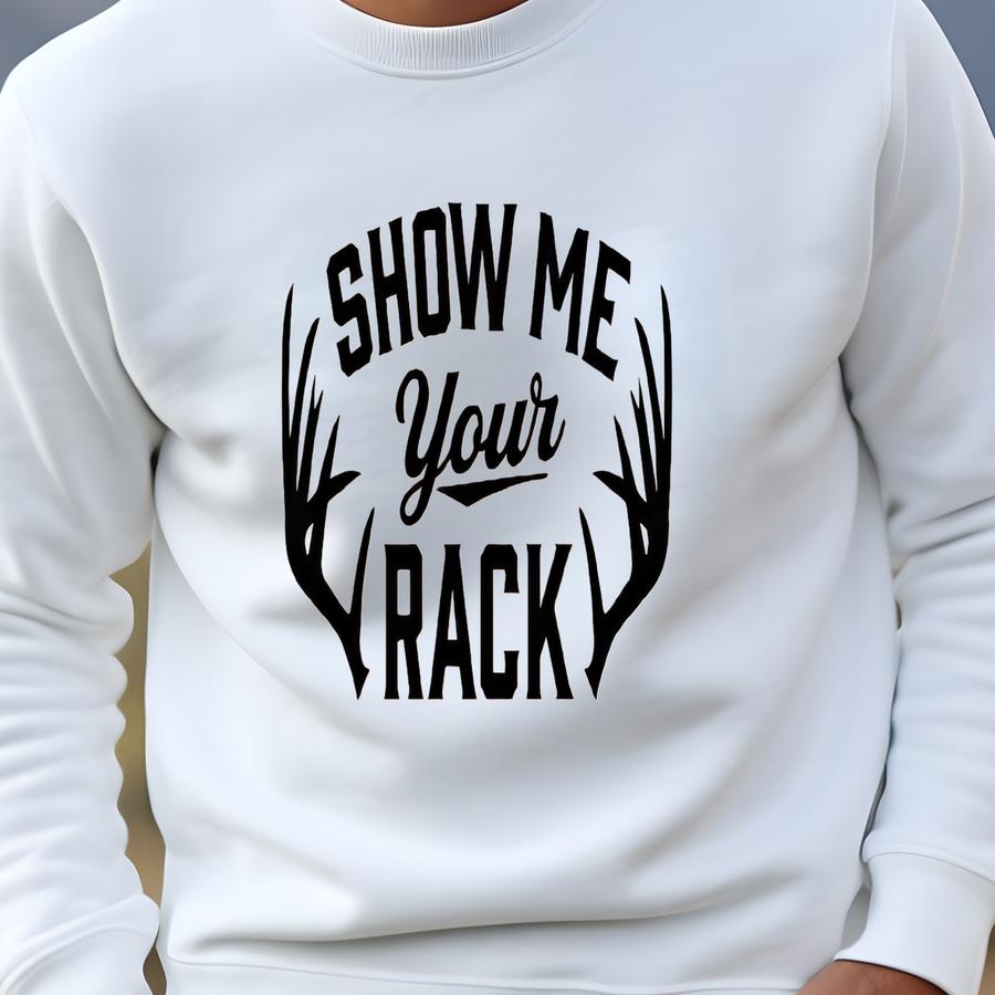 Show Me Your Rack Hat | Funny Hunting Trucker Hat For Men | Deer Antler Cap | Outdoor Humor Gift Sweatshirt