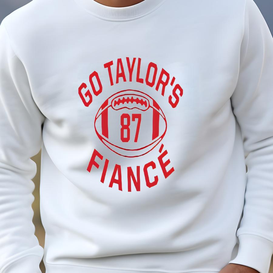Go Taylor’s Fiancé Shirt - Funny Football Game Day Tee For Women, Teens Kids - Cute Fall Sports Graphic T-shirt - Red And Gold Team Shirt Sweatshirt