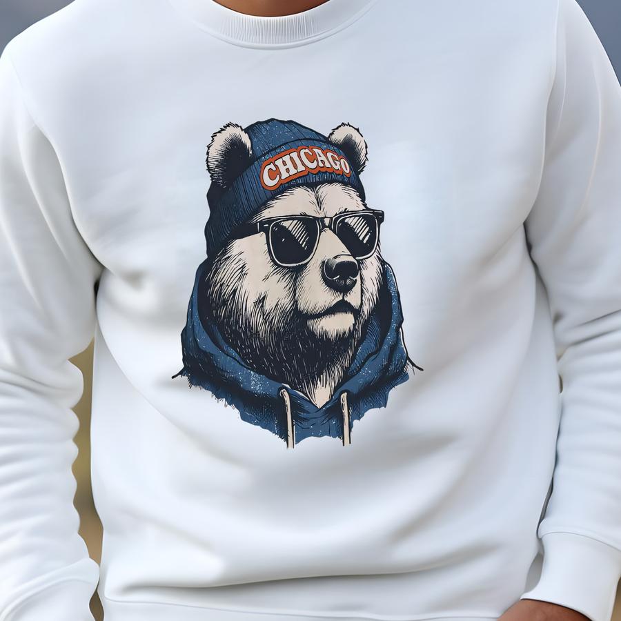 Chicago Bear Wearing Beanie And Sunglasses Shirt, Chicago Football Tee, Vintage Bear Game Day Shirt, Football Mascot Bear Tee Sweatshirt