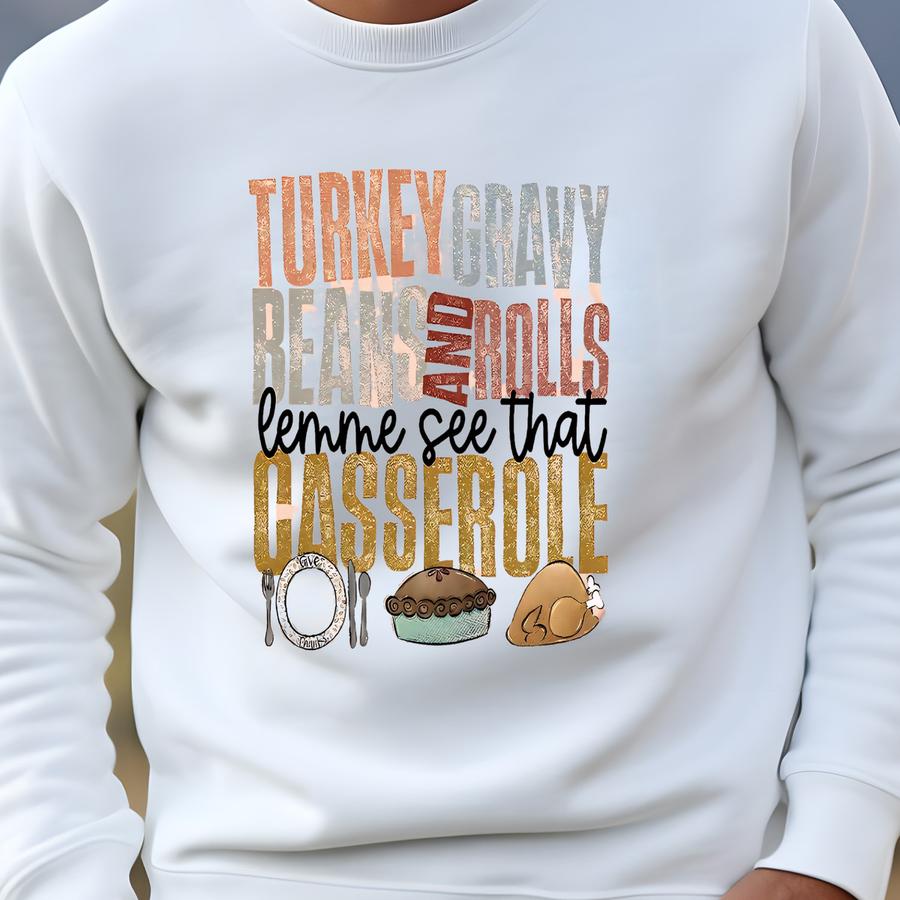 Turkey Gravy Beans And Rolls Let Me See That Casserole Shirt For Thanksgiving, Pumpkin Pie Shirt, Family Thanksgiving Dinner Turkey Shirt, Sweatshirt