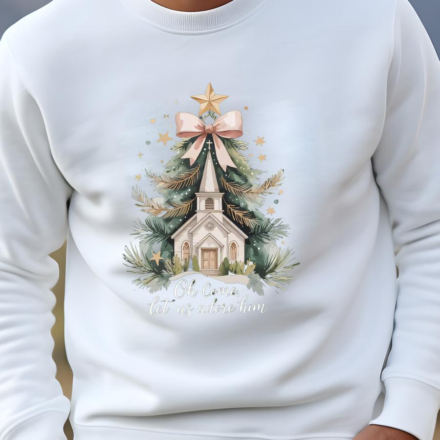 Oh Come Let Us Adore Him Shirt, Religious Christmas Sweatshirt, Christian Christmas Sweater, Christian Christmas Tree, Jesus Nativity Sweat Sweatshirt