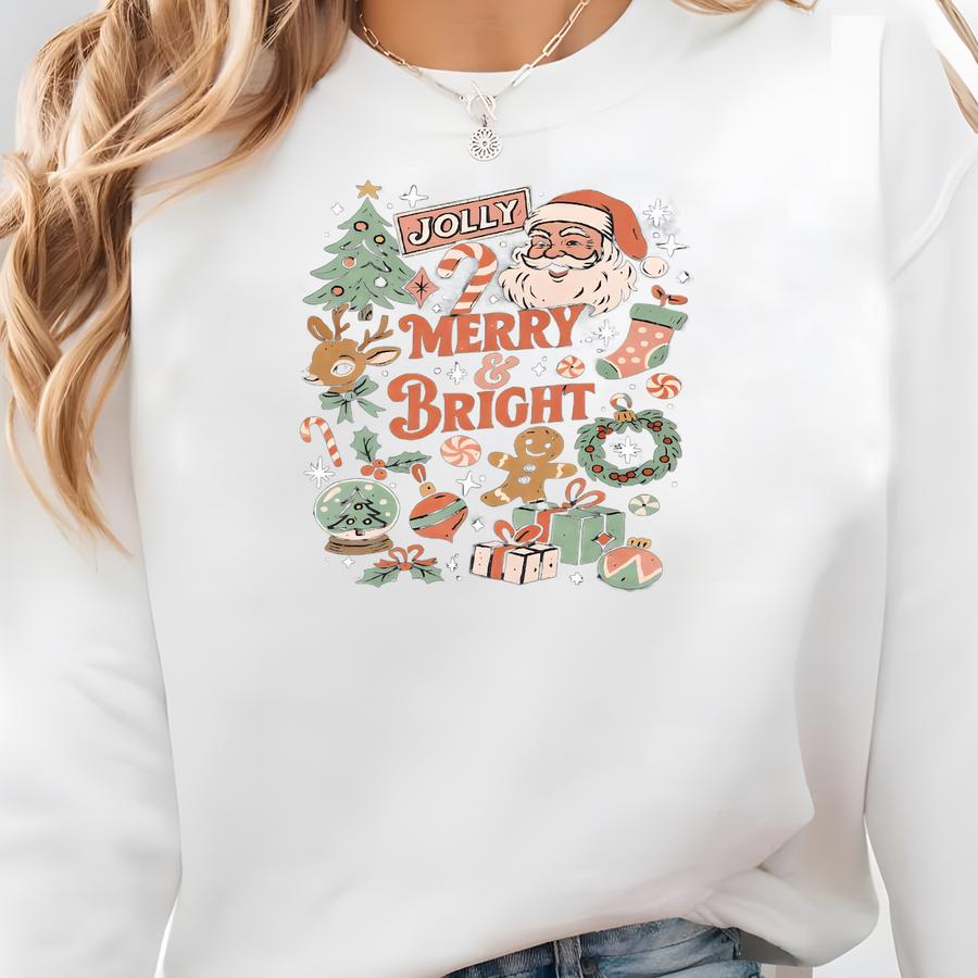 Merry And Bright Shirt, Christmas Doddles Shirt, Santa Claus Shirt Winter Season Gift For Women, Xmas Tree Shirt, Gingerbread Sweatshirt