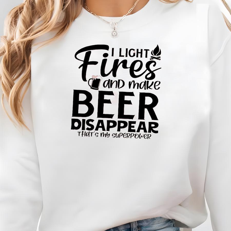 I Light Fires And Make Beer Disappear What's Your Superpower Sweatshirt, Camper Hoodie, Unisex Crewneck Sweatshirt For Camp Lover, E1130 Sweatshirt